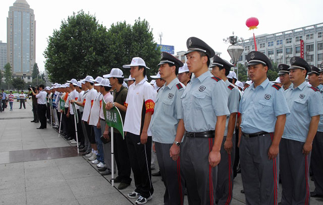 7月21日上午,淮安市群眾性義務(wù)巡防“紅袖標(biāo)工程”建設(shè)啟動儀式在市民健身廣場舉行,當(dāng)日,由出租車司機、聯(lián)防隊員、義務(wù)巡防隊員和市民代表等組成的1000余名“紅袖標(biāo)”義務(wù)巡防員走向淮安街頭開展巡邏工作。公司50余名保安員參與了啟動儀式。