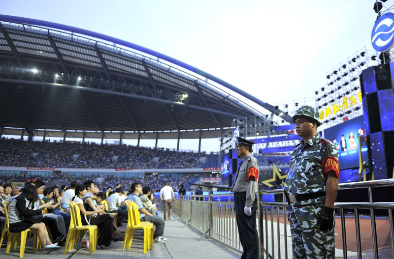 6月20日晚,由江蘇增力公司主辦的“雙溝牡丹2015亞洲群星演唱會”在淮安市體育中心體育場舉行,邀請韓紅、羅志祥、周筆暢、鄭智化、王杰等歌手來淮表演,現(xiàn)場觀眾3萬余人。為確保此次演唱會安全順利舉辦,總公司按照“周密部署、確保安全”的總體目標(biāo),專門成立了安保工作領(lǐng)導(dǎo)小組,精心制定安保方案,積極協(xié)同有關(guān)部門細致落實各項安保措施;成立人力防范、安全檢查、技防監(jiān)控、后勤保障等共8個工作組,共抽調(diào)總公司人防中心、押運中心、行政中心和器材公司、技防公司、物管公司、警犬基地等共計1000余名安保力量參加晚會安保工作,圓滿完成了任務(wù)。