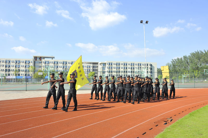 2015、2016、2017三屆保安學(xué)員共198名學(xué)生進(jìn)行了隊(duì)列和擒敵技術(shù)等技能展示,學(xué)生隊(duì)伍邁著整齊劃一的步伐,矯健有力,擒敵拳鏗鏘有力,動(dòng)作整齊。充分展現(xiàn)了保安專業(yè)過(guò)硬的專業(yè)素質(zhì)與豪邁的精神面貌,使在場(chǎng)的師生和家長(zhǎng)人員發(fā)出陣陣驚嘆,掌聲與歡呼聲不絕于耳。
