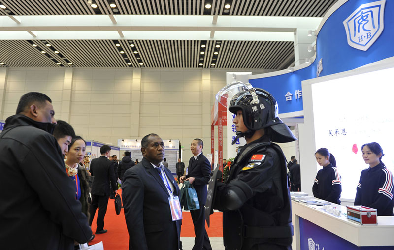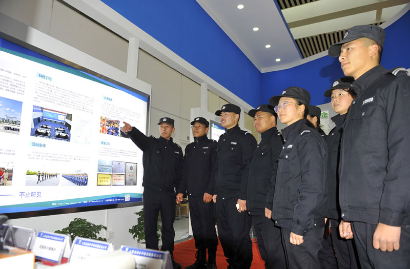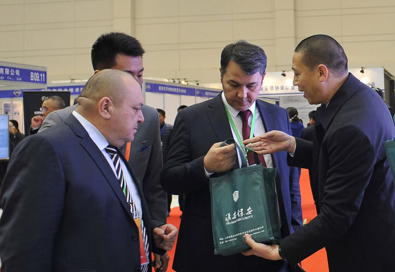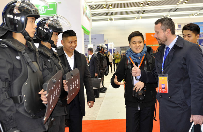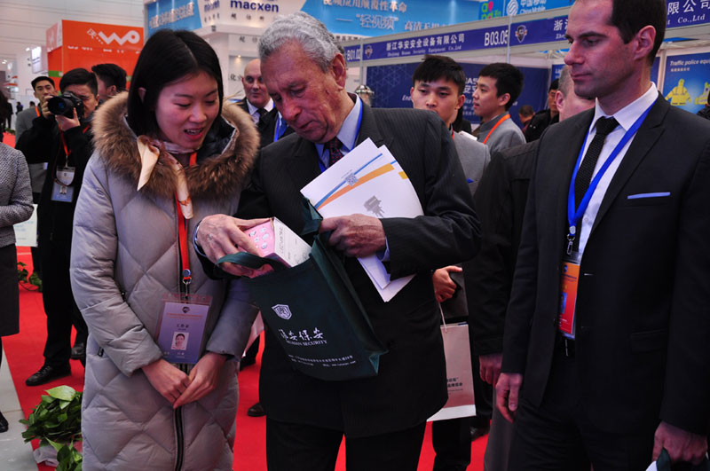 2017年12月11日,第三屆“連云港論壇”警用裝備和公共安全產(chǎn)品博覽會現(xiàn)場,淮安保安展臺吸引很多中外嘉賓駐足參觀,工作人員向嘉賓一一介紹公司展示的業(yè)務(wù)和項目情況。
